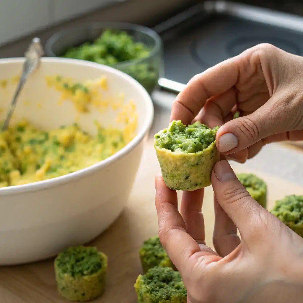 Use a tablespoon or a small cookie scoop to portion out the mixture. Gently roll and press each portion into a classic tot shape. Place the formed Broccoli Tots on your prepared baking sheet in a single layer, leaving a little space between each one.
